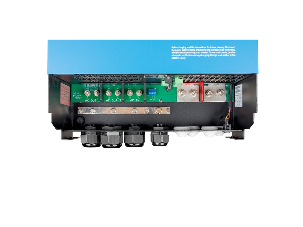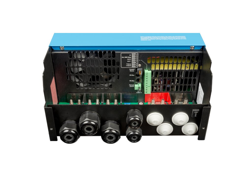 During a power outage or when the shore power or generator power is disconnected, the inverter integrated in the Multi quickly steps in and seamlessly takes over power to the connected loads. This transition is so fast, in less than 20 milliseconds, that computers and other electronic devices remain operational without any interruption.